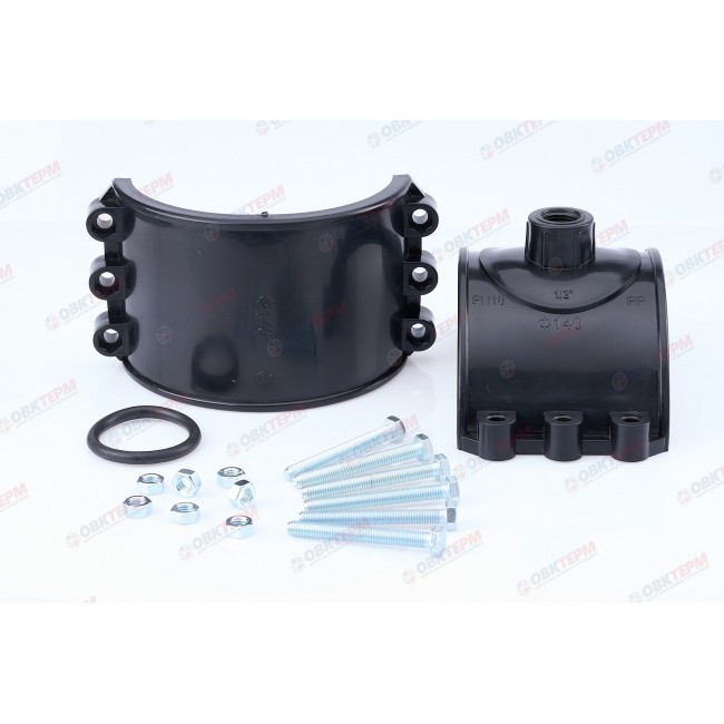 Седелка на трубу 140х1/2″ предназначена для устройства ответвления второстепенного ответвления от основного трубопровода из полиэтиленовой ПНД трубы, транспортирующей холодную питьевую или техническую воду. Седелка на трубу имеет простейшую конструкцию, заключающую в себе две полукруглых детали, обжимающие трубу диаметром 140 мм с двух сторон. Одна из частей имеет резьбовой выход на 1/2″.