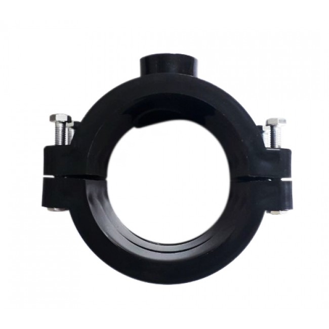 Седелка на трубу 140х2″ предназначена для устройства ответвления второстепенного ответвления от основного трубопровода из полиэтиленовой ПНД трубы, транспортирующей холодную питьевую или техническую воду. Седелка на трубу имеет простейшую конструкцию, заключающую в себе две полукруглых детали, обжимающие трубу диаметром 140 мм с двух сторон. Одна из частей имеет резьбовой выход на 2″.