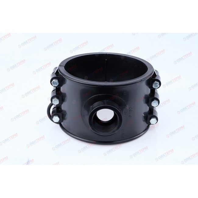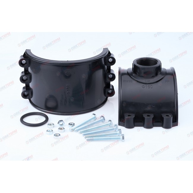 Седелка на трубу 160х 1 1/2″ предназначена для устройства ответвления второстепенного ответвления от основного трубопровода из полиэтиленовой ПНД трубы, транспортирующей холодную питьевую или техническую воду. Седелка на трубу имеет простейшую конструкцию, заключающую в себе две полукруглых детали, обжимающие трубу диаметром 160 мм с двух сторон. Одна из частей имеет резьбовой выход на 1 1/2″.