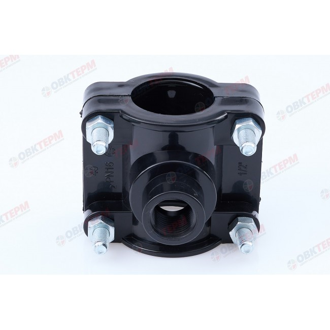Седелка на трубу 40х1/2″ предназначена для устройства ответвления второстепенного ответвления от основного трубопровода из полиэтиленовой ПНД трубы, транспортирующей холодную питьевую или техническую воду. Седелка на трубу имеет простейшую конструкцию, заключающую в себе две полукруглых детали, обжимающие трубу диаметром 40 мм с двух сторон. Одна из частей имеет резьбовой выход на 1/2″.