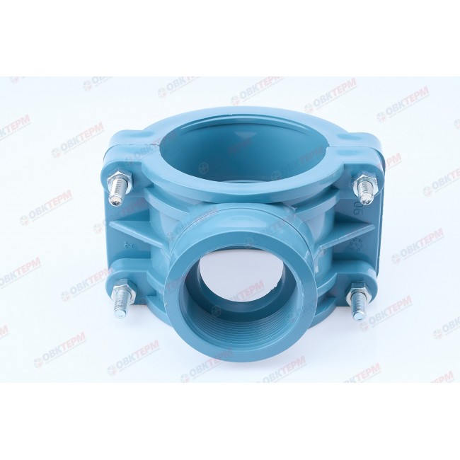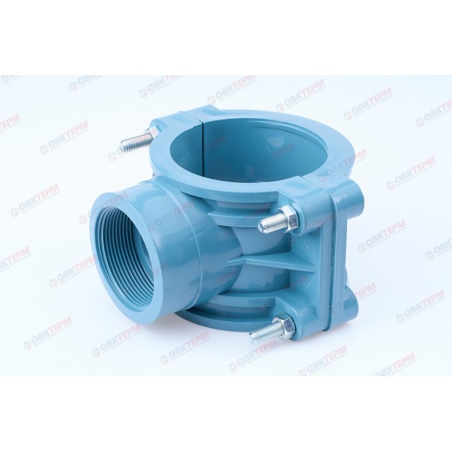 Седелка на трубу 90х2″ предназначена для устройства ответвления второстепенного ответвления от основного трубопровода из полиэтиленовой ПНД трубы, транспортирующей холодную питьевую или техническую воду. Седелка на трубу имеет простейшую конструкцию, заключающую в себе две полукруглых детали, обжимающие трубу диаметром 90 мм с двух сторон. Одна из частей имеет резьбовой выход на 2″.