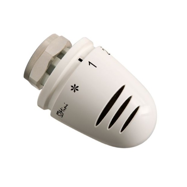 Головка термостатическая уменьшенного размера герц-дизайн "мини" с жидкостным датчиком, с позициями теплового запирания “0” (0 °С) и морозозащиты “*” 6 °С. Размеры: длина 75 мм, диаметр маховичка 45 мм. Отличительная особенность Компактная термостатическая головка для применения в ограниченном пространстве.