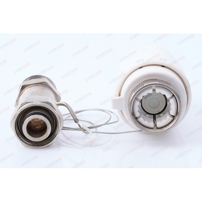 Температура жидкости, проходящей через датчик-сенсор, задаётся на шкале термоголовки. Создает комфорт, автоматически поддерживая желаемую температуру в помещениях, освобождает от необходимости лишних регулировок,