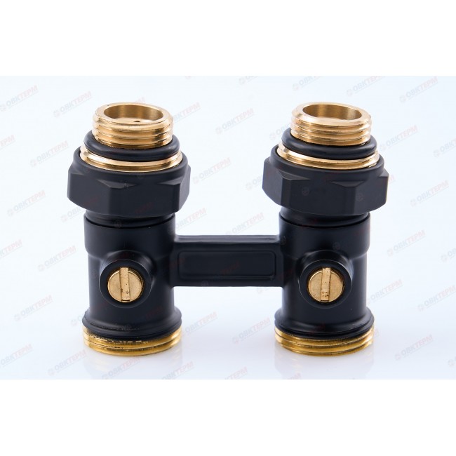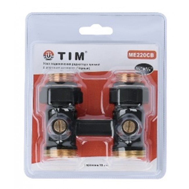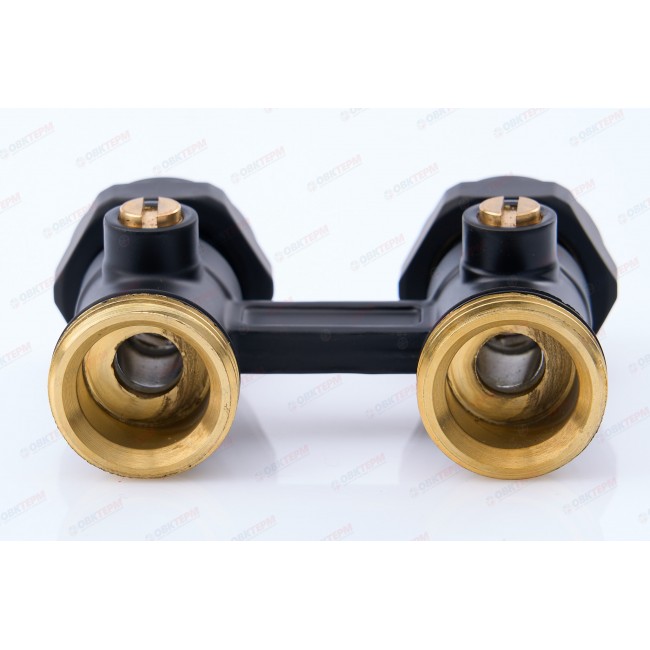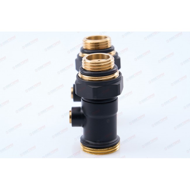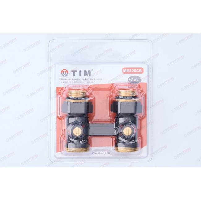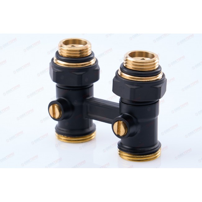 Узел (кран-бинокль) С НИППЕЛЯМИ для подключения радиатора прямой ШАРОВЫЙ TIM ЧЕРНЫЙ