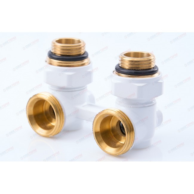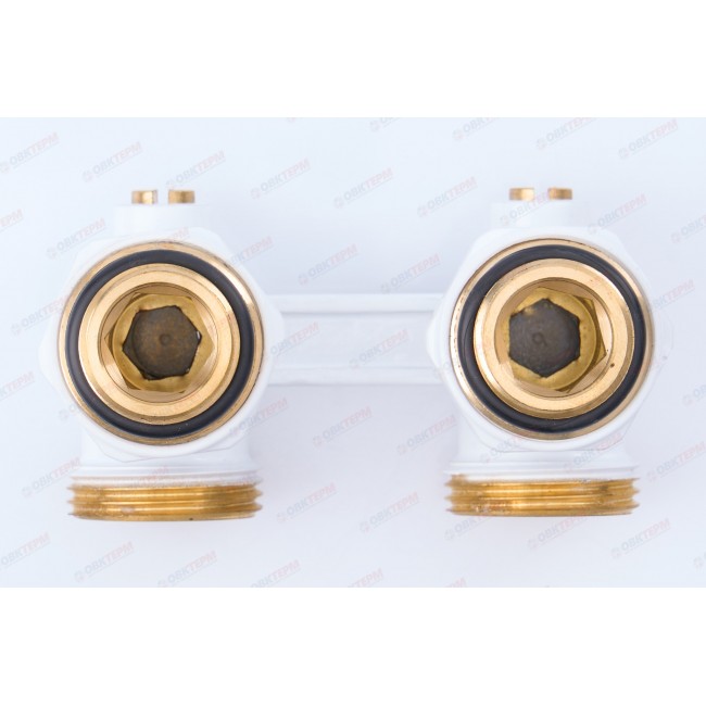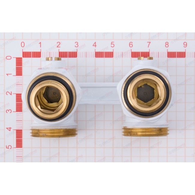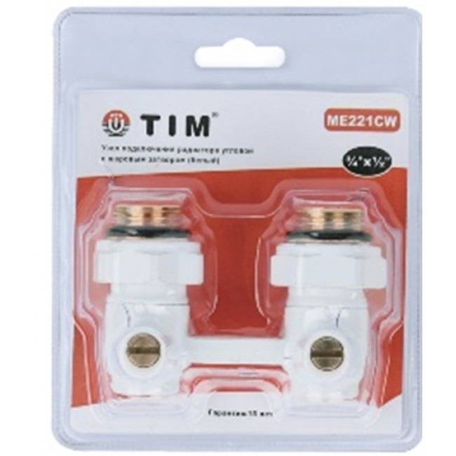 Узел (кран-бинокль) С НИППЕЛЯМИ для подключения радиатора угловой ШАРОВЫЙ TIM БЕЛЫЙ