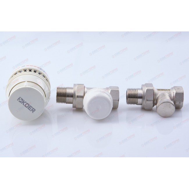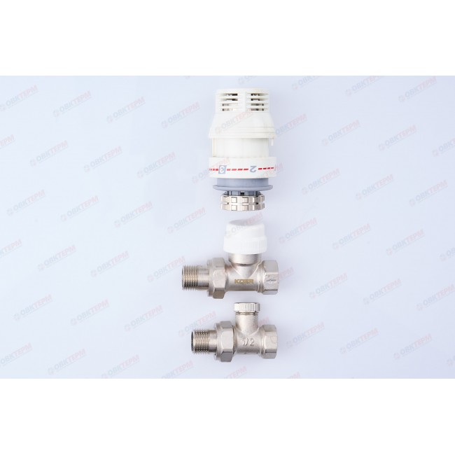 Комплект радиаторных клапанов 1/2" прямой верх, низ, головка KR5168 Koer