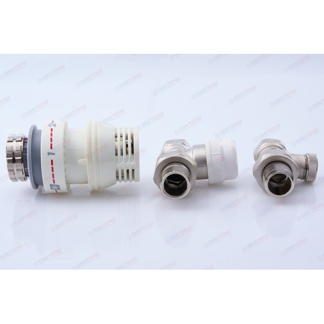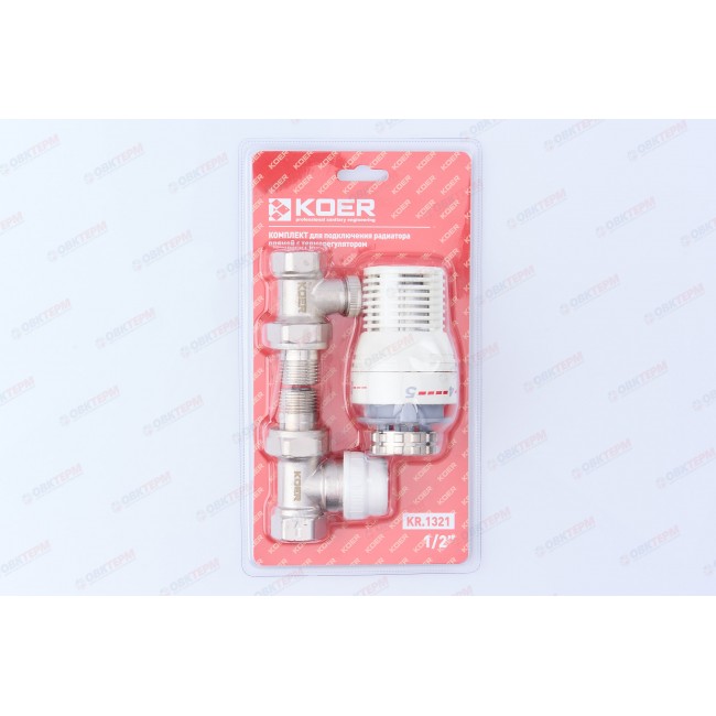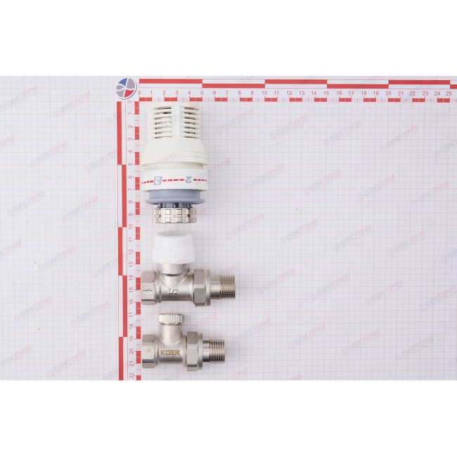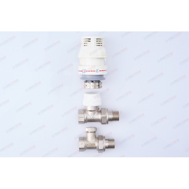 Прямой комплект радиаторных клапанов Koer применяется в системах отопления для автоматического регулирования подачи теплоносителя. Данный комплект прямой, диаметром 1/2" используется для подключения радиатора. Изменение температуры в помещении приводит в действие сенсор находящийся внутри термоголовки. Термоголовка открывает или закрывает клапан который отвечает за поступление горячей воды в радиатор. При достижении необходимой температуры в помещении, термоголовка постепенно закрывает клапан, тем самым уменьшая количество поступаемого теплоносителя в радиатор.
