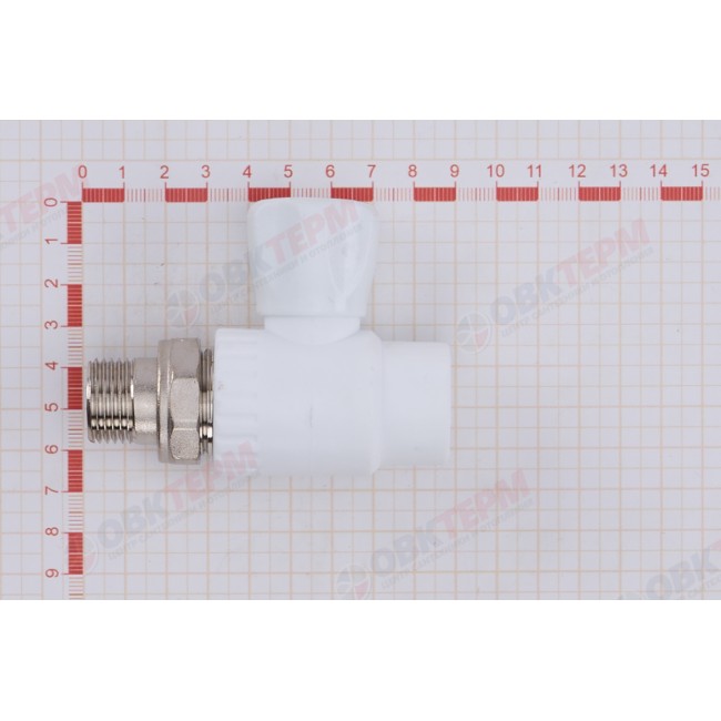 Кран радиаторный 20*1/2" с накидной гайкой прямой латунный шар белый RTP
