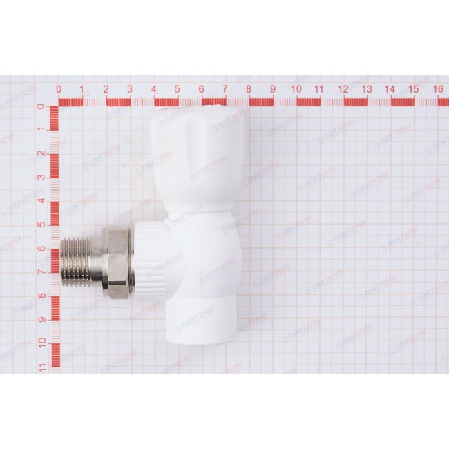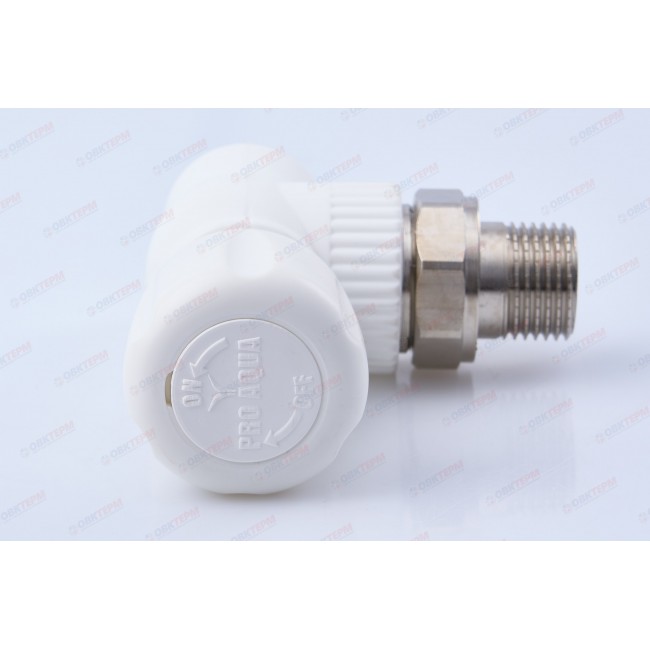 Кран радиаторный 20*1/2" с накидной гайкой угловой латунный шар белый Pro Aqua