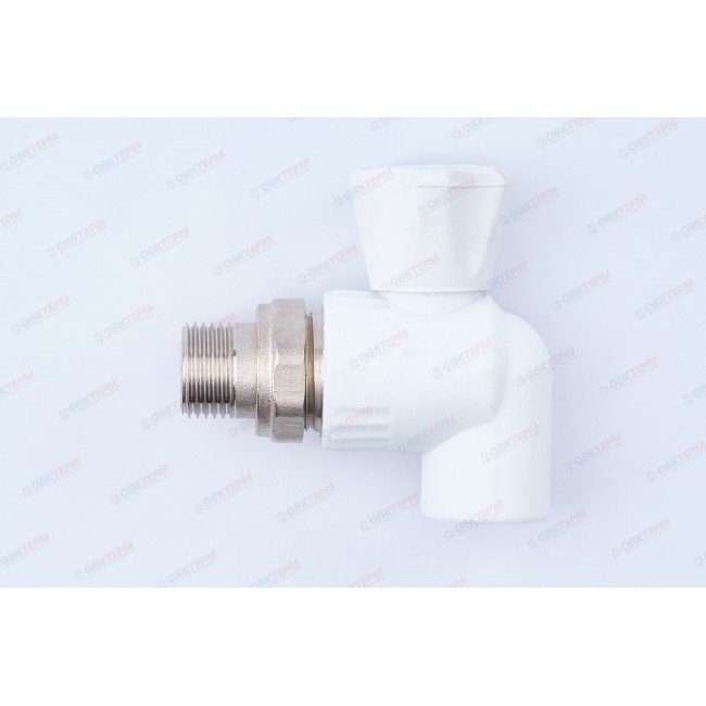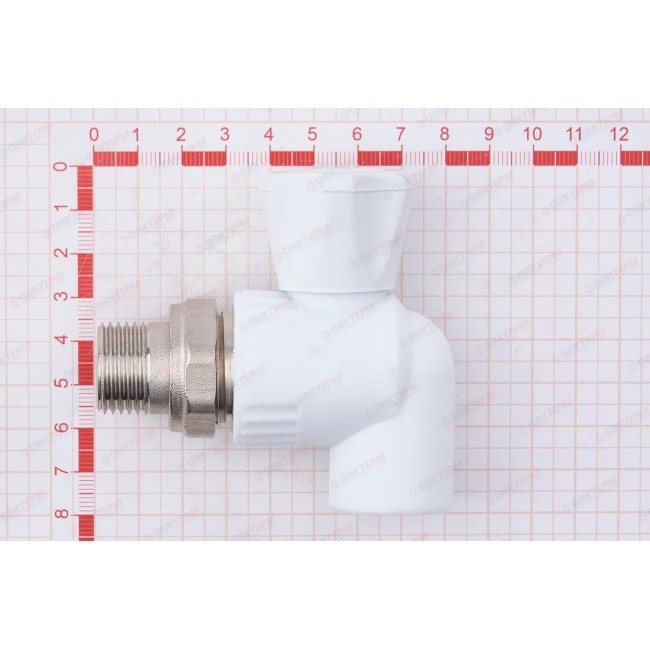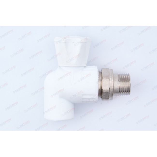 Кран радиаторный 20*1/2" с накидной гайкой угловой латунный шар белый Valfex