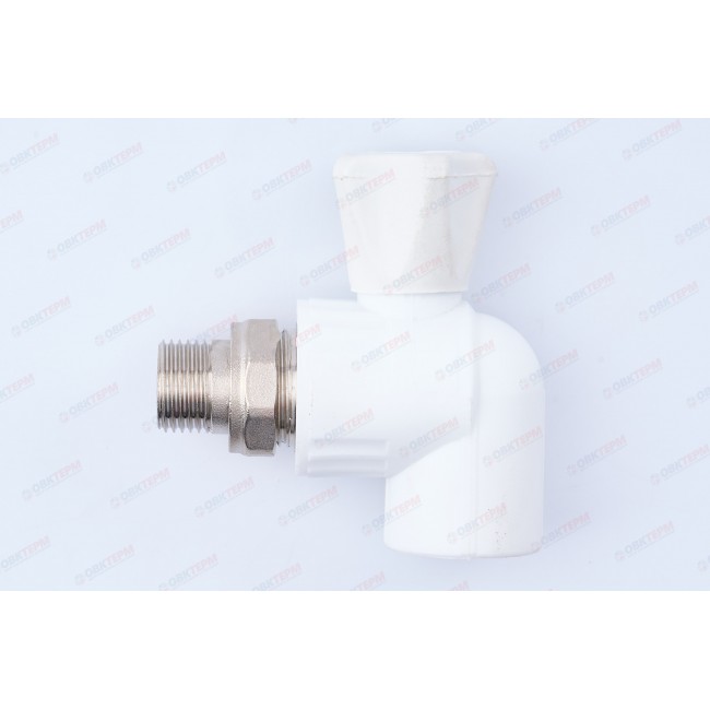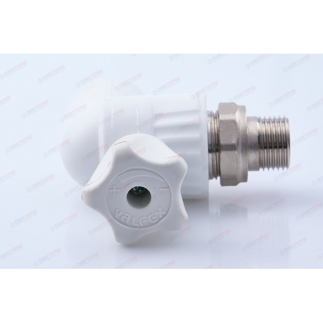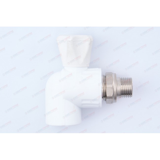 Кран радиаторный 25*1/2" с накидной гайкой угловой латунный шар белый Valfex