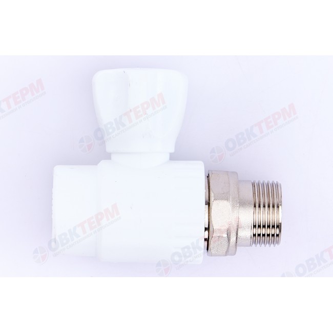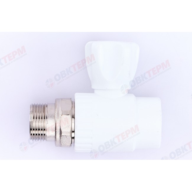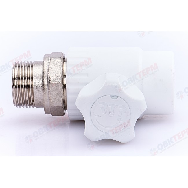 Кран радиаторный 25*3/4" с накидной гайкой прямой латунный шар белый RTP