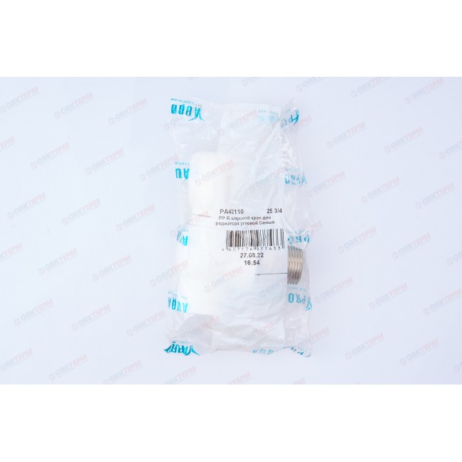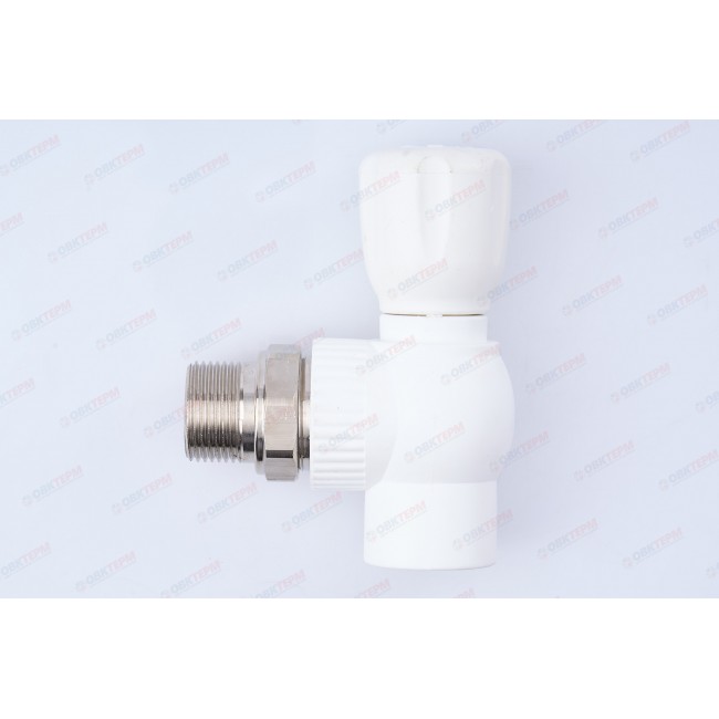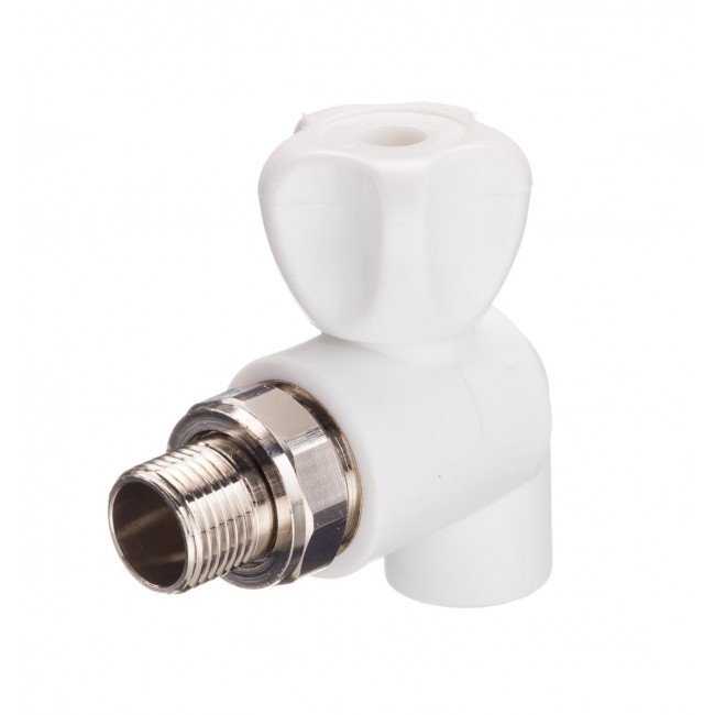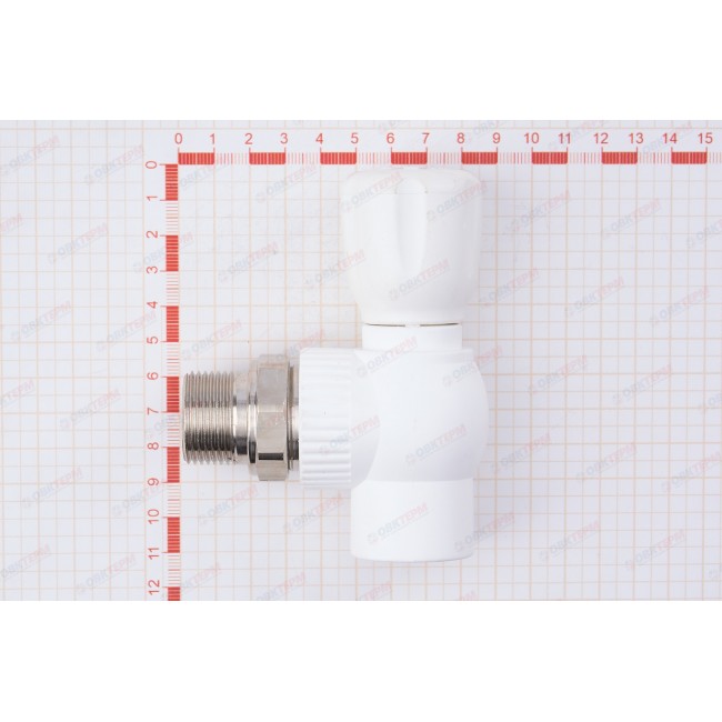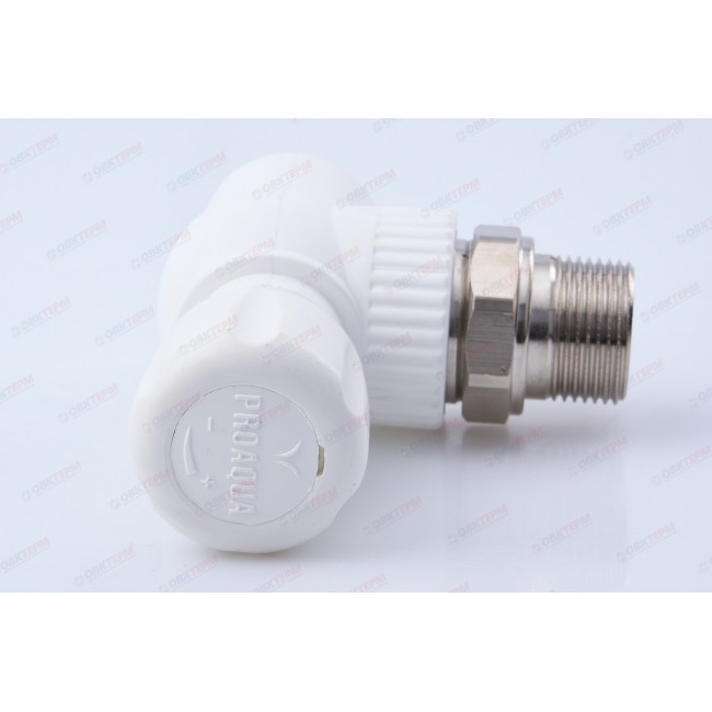 Кран радиаторный 25*3/4" с накидной гайкой угловой латунный шар белый Pro Aqua