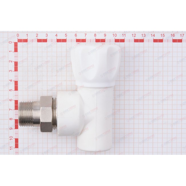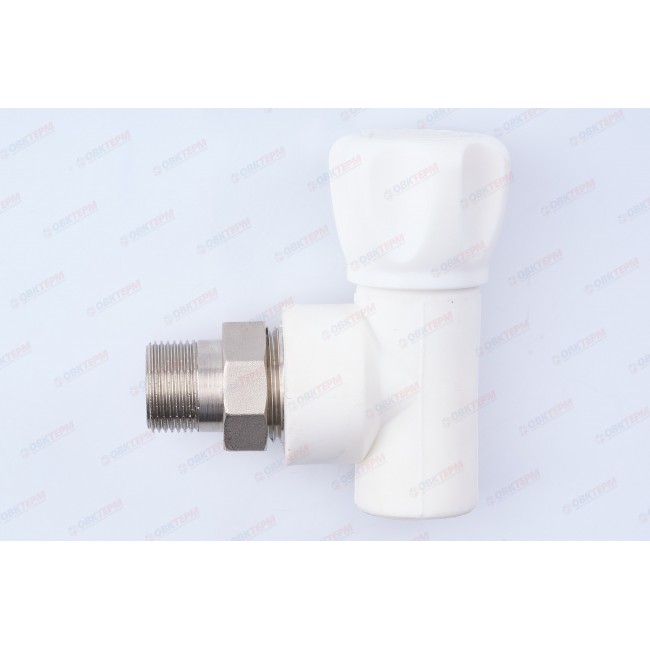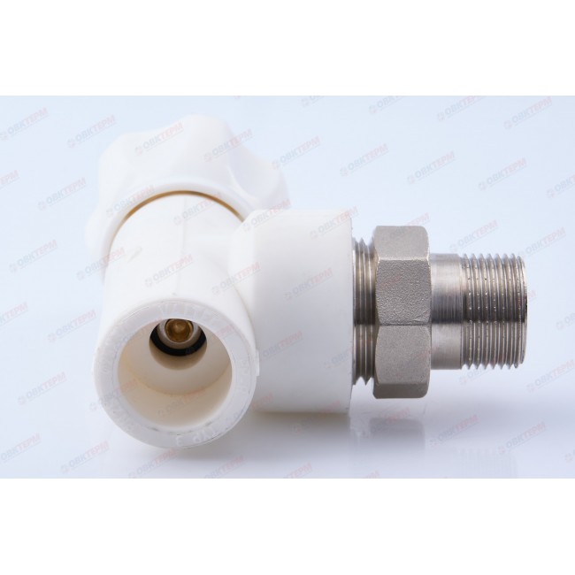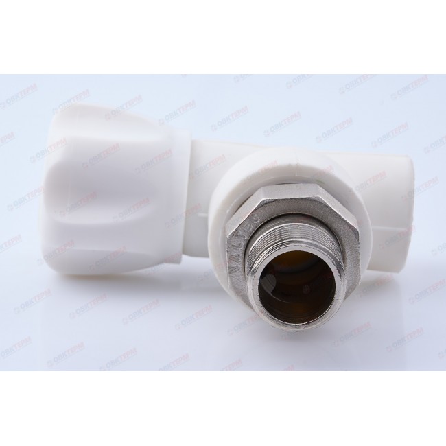 Клапан с полипропиленовым корпусом, угловой. Предназначен для ручной регулировки количества поступающего в отопительный прибор теплоносителя. Клапан позволяет полностью перекрывать поток. Подключение клапана к отопительному прибору производится с помощью закладной детали и полусгона, выполненных из латуни с никелевым покрытием. Монтаж полипропиленовой трубы производится раструбной сваркой. Кроме отопления полипропиленовый клапан VTp.718.V можно использовать в водоснабжении, включая питьевое, и технологических установках.