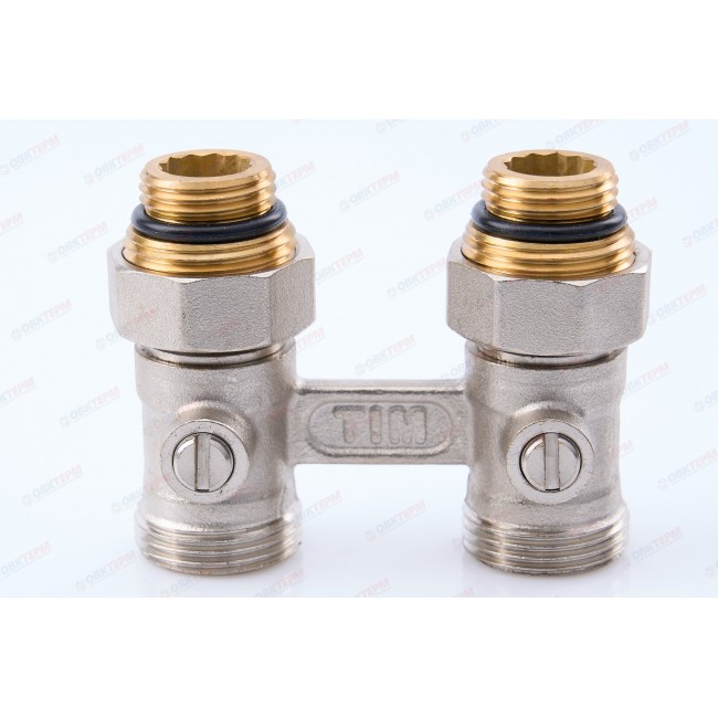 Узел, кран-бинокль с ниппелями для подключения радиатора прямой шаровый ME220AC TIM