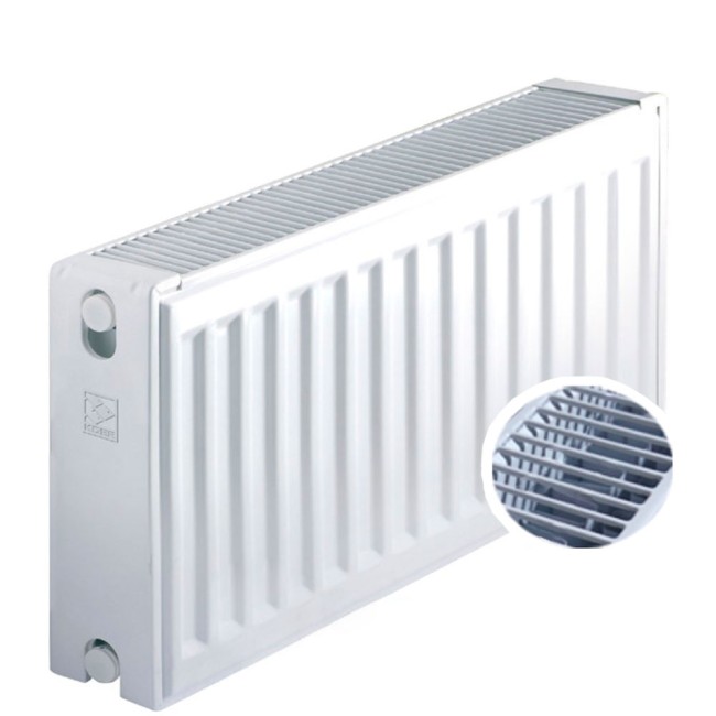 Благодаря своим конструктивным особенностям панельный радиатор показывает отличную теплоотдачу, используя малое количество теплоносителя. Форма радиатора придает ему универсального современного дизайна, что позволяет использовать панельный радиатор в бытовом и промышленном секторе. Горячая вода поступает в радиатор через фитинг (тройник), который распределяет её на переднюю и заднюю панели. Теплоноситель, проходя внутри панели, отдает тепло на внешние стенки прибора; они в свою очередь, излучают частично тепловую энергию в отапливаемое помещение, остальное тепло отдается через теплообменник с помощью естественной конвекции. Преимущества стальных панельных радиаторов: высокая теплоотдача; экономичный расход теплоносителя; высокий уровень защиты от коррозии; цветостойкость; относительная ударостойкость поверхности; каждый стальной радиатор комплектуется заглушкой, краном Маевского; радиаторы укомплектованы пластинами для крепления.