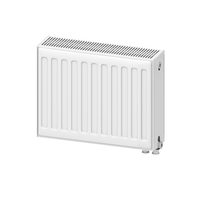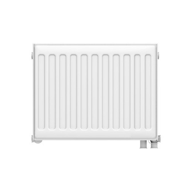 Благодаря своим конструктивным особенностям панельный радиатор показывает отличную теплоотдачу, используя малое количество теплоносителя. Форма радиатора придает ему универсального современного дизайна, что позволяет использовать панельный радиатор в бытовом и промышленном секторе. Горячая вода поступает в радиатор через фитинг (тройник), который распределяет её на переднюю и заднюю панели. Теплоноситель, проходя внутри панели, отдает тепло на внешние стенки прибора; они в свою очередь, излучают частично тепловую энергию в отапливаемое помещение, остальное тепло отдается через теплообменник с помощью естественной конвекции. Преимущества стальных панельных радиаторов: высокая теплоотдача; экономичный расход теплоносителя; высокий уровень защиты от коррозии; цветостойкость; относительная ударостойкость поверхности; каждый стальной радиатор комплектуется заглушкой, краном Маевского; радиаторы укомплектованы пластинами для крепления.