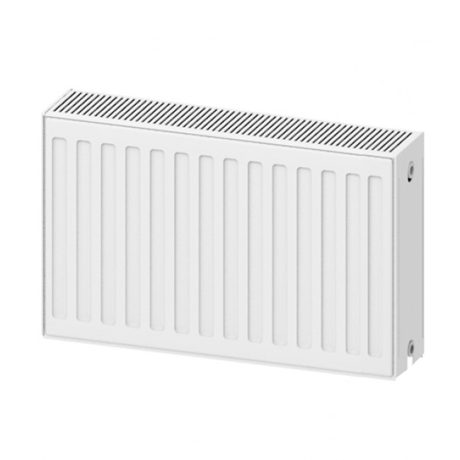 Благодаря своим конструктивным особенностям панельный радиатор показывает отличную теплоотдачу, используя малое количество теплоносителя. Форма радиатора придает ему универсального современного дизайна, что позволяет использовать панельный радиатор в бытовом и промышленном секторе. Горячая вода поступает в радиатор через фитинг (тройник), который распределяет её на переднюю и заднюю панели. Теплоноситель, проходя внутри панели, отдает тепло на внешние стенки прибора; они в свою очередь, излучают частично тепловую энергию в отапливаемое помещение, остальное тепло отдается через теплообменник с помощью естественной конвекции. Преимущества стальных панельных радиаторов: высокая теплоотдача; экономичный расход теплоносителя; высокий уровень защиты от коррозии; цветостойкость; относительная ударостойкость поверхности; каждый стальной радиатор комплектуется заглушкой, краном Маевского; радиаторы укомплектованы пластинами для крепления.