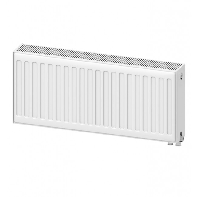 Благодаря своим конструктивным особенностям панельный радиатор показывает отличную теплоотдачу, используя малое количество теплоносителя. Форма радиатора придает ему универсального современного дизайна, что позволяет использовать панельный радиатор в бытовом и промышленном секторе. Горячая вода поступает в радиатор через фитинг (тройник), который распределяет её на переднюю и заднюю панели. Теплоноситель, проходя внутри панели, отдает тепло на внешние стенки прибора; они в свою очередь, излучают частично тепловую энергию в отапливаемое помещение, остальное тепло отдается через теплообменник с помощью естественной конвекции. Преимущества стальных панельных радиаторов: высокая теплоотдача; экономичный расход теплоносителя; высокий уровень защиты от коррозии; цветостойкость; относительная ударостойкость поверхности; каждый стальной радиатор комплектуется заглушкой, краном Маевского; радиаторы укомплектованы пластинами для крепления.