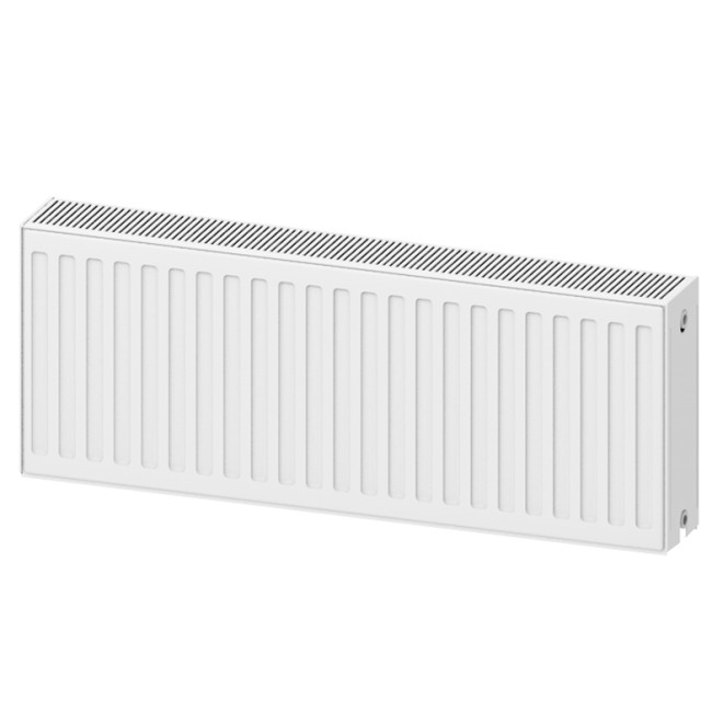 Благодаря своим конструктивным особенностям панельный радиатор показывает отличную теплоотдачу, используя малое количество теплоносителя. Форма радиатора придает ему универсального современного дизайна, что позволяет использовать панельный радиатор в бытовом и промышленном секторе. Горячая вода поступает в радиатор через фитинг (тройник), который распределяет её на переднюю и заднюю панели. Теплоноситель, проходя внутри панели, отдает тепло на внешние стенки прибора; они в свою очередь, излучают частично тепловую энергию в отапливаемое помещение, остальное тепло отдается через теплообменник с помощью естественной конвекции. Преимущества стальных панельных радиаторов: высокая теплоотдача; экономичный расход теплоносителя; высокий уровень защиты от коррозии; цветостойкость;