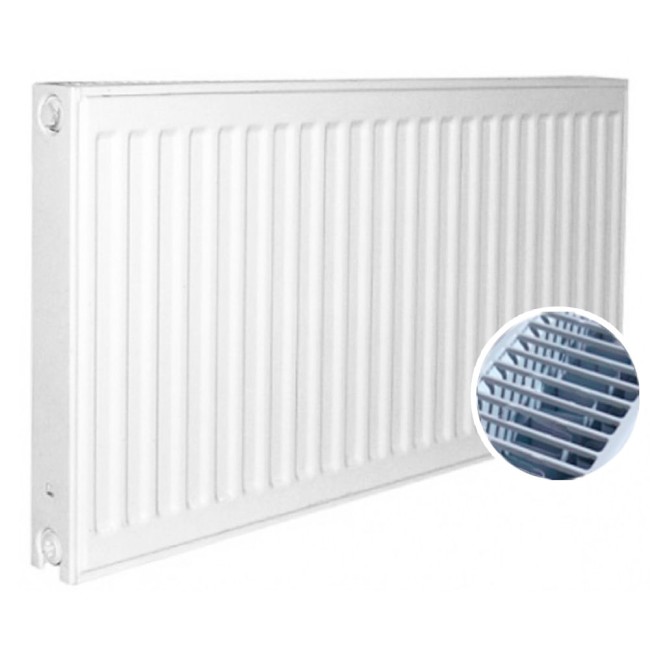 Благодаря своим конструктивным особенностям панельный радиатор показывает отличную теплоотдачу, используя малое количество теплоносителя. Форма радиатора придает ему универсального современного дизайна, что позволяет использовать панельный радиатор в бытовом и промышленном секторе. Горячая вода поступает в радиатор через фитинг (тройник), который распределяет её на переднюю и заднюю панели. Теплоноситель, проходя внутри панели, отдает тепло на внешние стенки прибора; они в свою очередь, излучают частично тепловую энергию в отапливаемое помещение, остальное тепло отдается через теплообменник с помощью естественной конвекции. Преимущества стальных панельных радиаторов: высокая теплоотдача; экономичный расход теплоносителя; высокий уровень защиты от коррозии; цветостойкость; относительная ударостойкость поверхности; каждый стальной радиатор комплектуется заглушкой, краном Маевского; радиаторы укомплектованы пластинами для крепления.