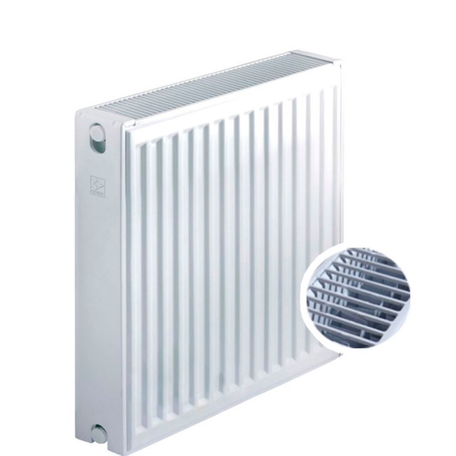 Благодаря своим конструктивным особенностям панельный радиатор показывает отличную теплоотдачу, используя малое количество теплоносителя. Форма радиатора придает ему универсального современного дизайна, что позволяет использовать панельный радиатор в бытовом и промышленном секторе. Горячая вода поступает в радиатор через фитинг (тройник), который распределяет её на переднюю и заднюю панели. Теплоноситель, проходя внутри панели, отдает тепло на внешние стенки прибора; они в свою очередь, излучают частично тепловую энергию в отапливаемое помещение, остальное тепло отдается через теплообменник с помощью естественной конвекции. Преимущества стальных панельных радиаторов: высокая теплоотдача; экономичный расход теплоносителя; высокий уровень защиты от коррозии; цветостойкость; относительная ударостойкость поверхности; каждый стальной радиатор комплектуется заглушкой, краном Маевского; радиаторы укомплектованы пластинами для крепления.