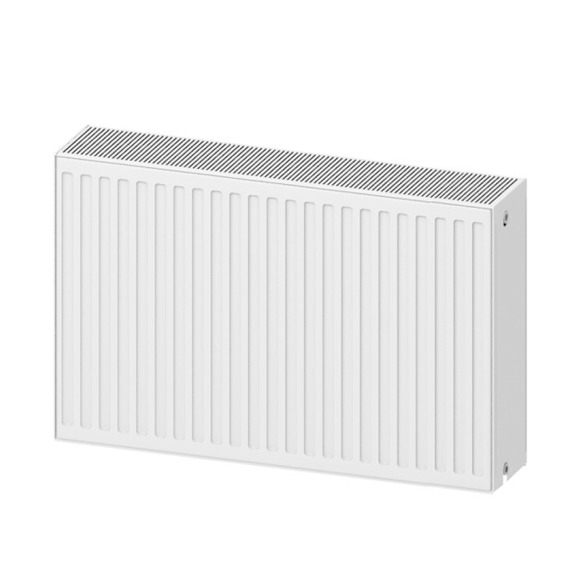 Благодаря своим конструктивным особенностям панельный радиатор показывает отличную теплоотдачу, используя малое количество теплоносителя. Форма радиатора придает ему универсального современного дизайна, что позволяет использовать панельный радиатор в бытовом и промышленном секторе. Горячая вода поступает в радиатор через фитинг (тройник), который распределяет её на переднюю и заднюю панели. Теплоноситель, проходя внутри панели, отдает тепло на внешние стенки прибора; они в свою очередь, излучают частично тепловую энергию в отапливаемое помещение, остальное тепло отдается через теплообменник с помощью естественной конвекции. Преимущества стальных панельных радиаторов: высокая теплоотдача; экономичный расход теплоносителя; высокий уровень защиты от коррозии; цветостойкость; относительная ударостойкость поверхности; каждый стальной радиатор комплектуется заглушкой, краном Маевского; радиаторы укомплектованы пластинами для крепления.