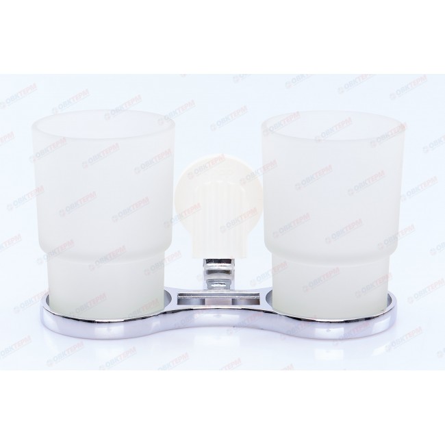 Стакан двойной стеклянный, настенный. Держатель с двумя стаканами. Два стакана съемные, стаканы выполнены из матового стекла, которые по необходимости можно легко снять с хромированного держателя и помыть. Конструкция держателя оснащена местами для зубных щеток. Имеет специальное хромированное покрытие, которое защищает изделие от влаги и придает ему блестящий внешний вид.