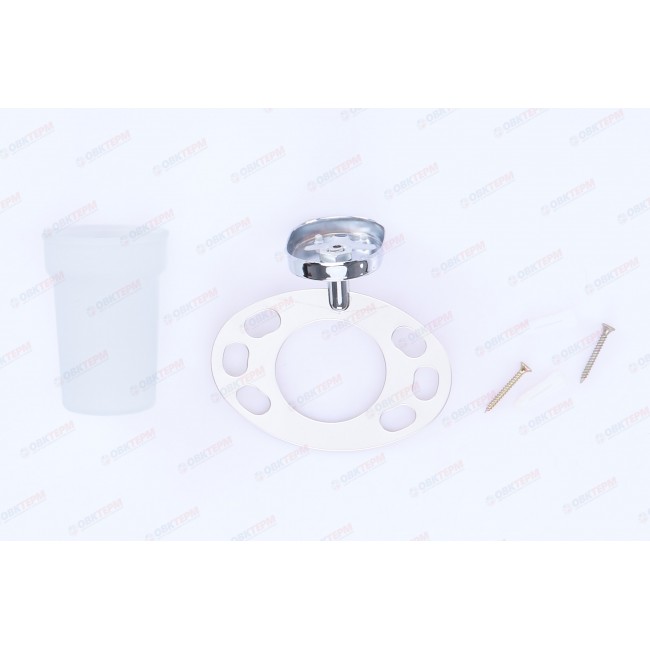 Стакан съемный, стакан изготовлен из матового стекла. Конструкция держателя оснащена местами для зубных щеток. Имеет специальное хромированное покрытие, которое защищает изделие от влаги и придает ему блестящий внешний вид. Монтаж к стене осуществляется с помощью дюбелей, идущих в комплекте.