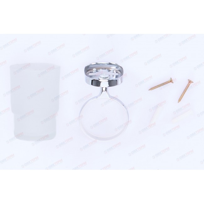 Стакан выполнен из матового стекла. Съемный стакан обеспечивает легкость и простоту в использовании. Имеет специальное хромированное покрытие, которое защищает изделие от влаги и придает ему блестящий внешний вид. Монтаж к стене осуществляется с помощью дюбелей, идущих в комплекте.