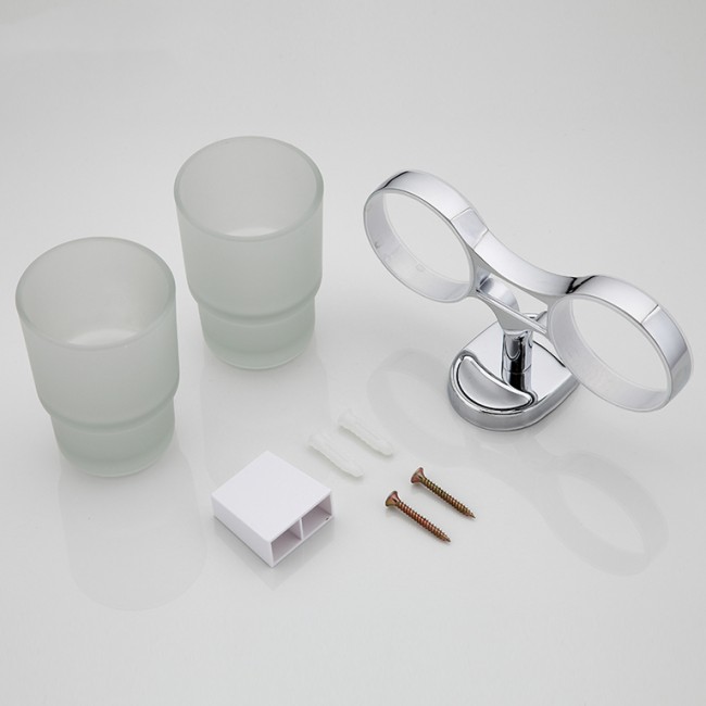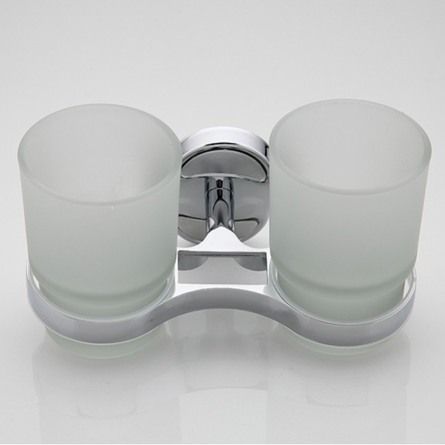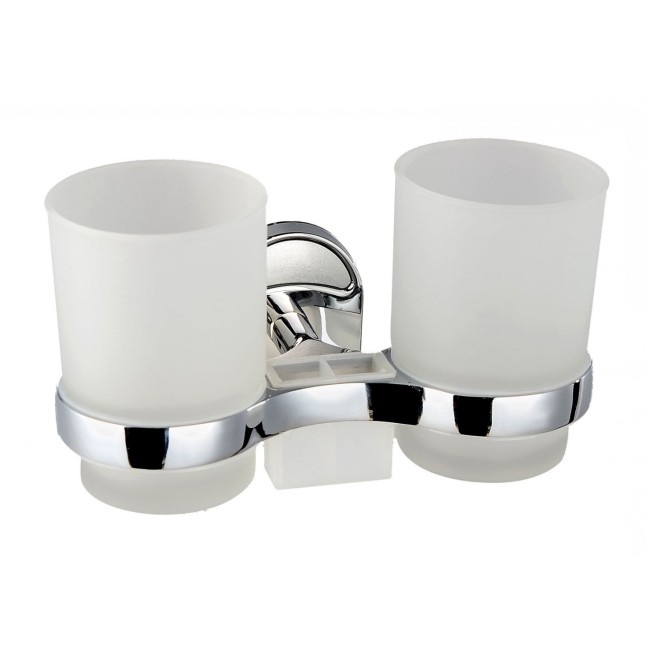 Стакан двойной стеклянный, настенный. Держатель с двумя стаканами. Два стакана съемные, стаканы выполнены из матового стекла, которые по необходимости можно легко снять с хромированного держателя и помыть. Конструкция держателя оснащена местами для зубных щеток. Имеет специальное хромированное покрытие, которое защищает изделие от влаги и придает ему блестящий внешний вид.