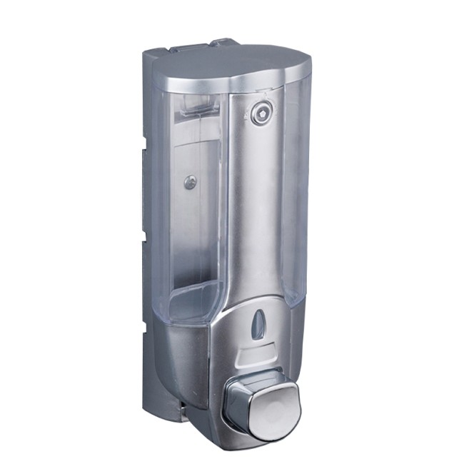 Сделан из качественного материала, покрыт хромом. Съемный контейнер можете отдельно снять ёмкость и при необходимости промыть, оставив крепление на стене. Может применяться как для дома, так и для бытовых помещений. На корпусе расположена удобная кнопка, которая при нажатии на нее дозированно подает жидкое мыло.