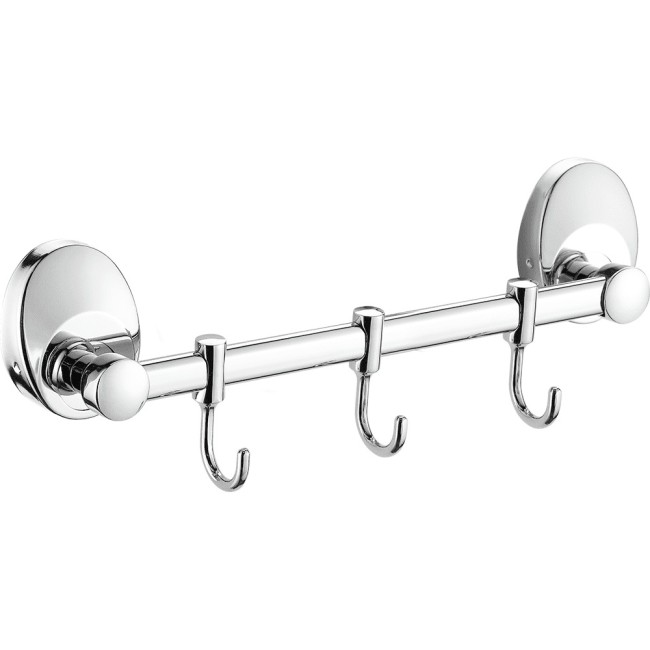 Три движущихся крючка на общем держателе. Благодаря подвижности крючков можно регулировать расстояние между ними, что очень практично.Крючок подойдет для навешивания предмета любого размера и формы. Выполнен из качественной нержавеющей стали. На поверхность крючка нанесено хромированное покрытие, придающее блеск.