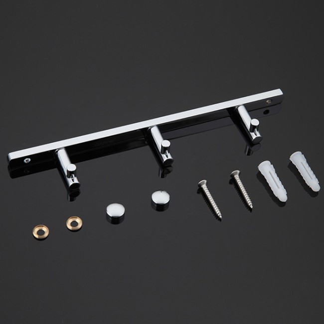 Три крючка расположены на оптимальном расстоянии друг от друга для удобного использования. Устанавливается на стену посредством шурупов или саморезов. Стойкое хромированное покрытие защищает изделие от влаги и придает ему блестящий вид.