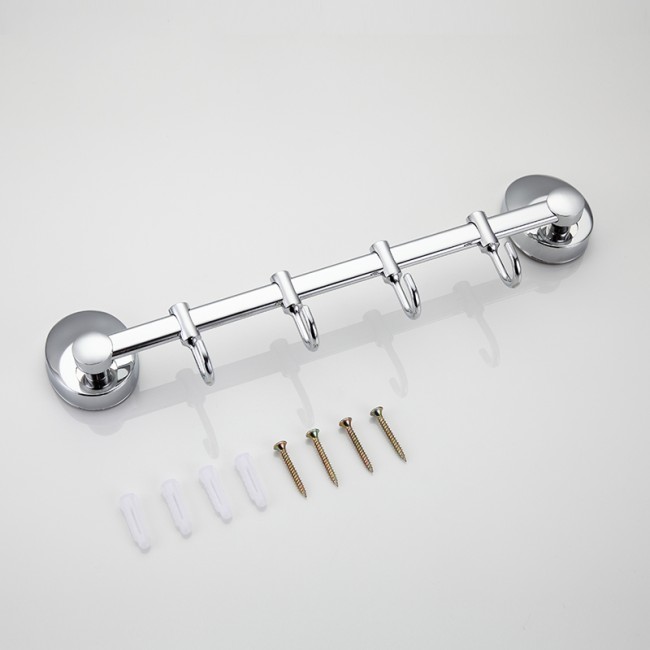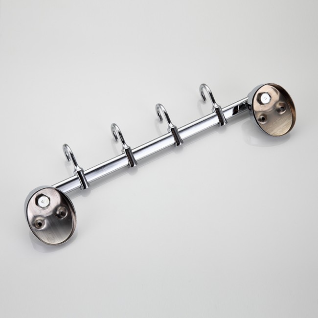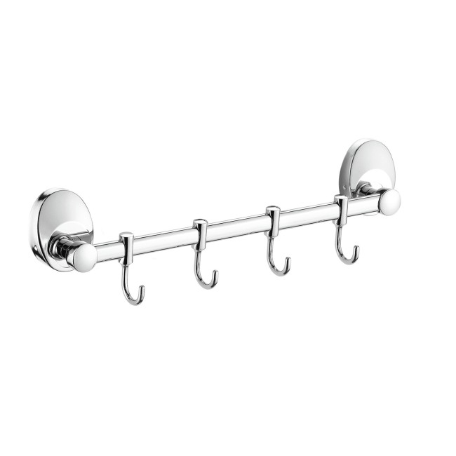 Четыре движущихся крючка на общем держателе. Благодаря подвижности крючков можно регулировать расстояние между ними, что очень практично.Крючок подойдет для навешивания предмета любого размера и формы. Выполнен из качественной нержавеющей стали. На поверхность крючка нанесено хромированное покрытие, придающее блеск.