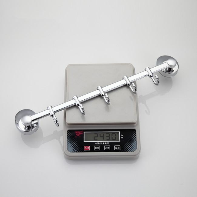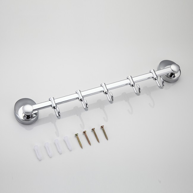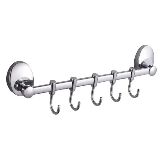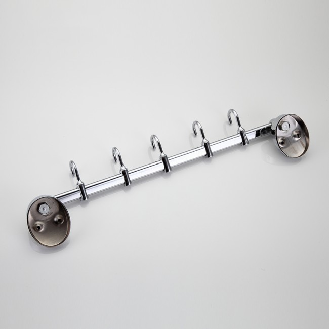 Пять движущихся крючков на общем держателе. Благодаря подвижности крючков можно регулировать расстояние между ними, что очень практично. Крючок подойдет для навешивания предмета любого размера и формы. Выполнен из качественной нержавеющей стали. На поверхность крючка нанесено хромированное покрытие, придающее блеск.