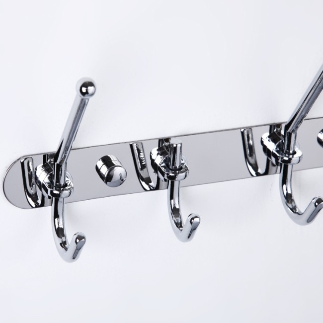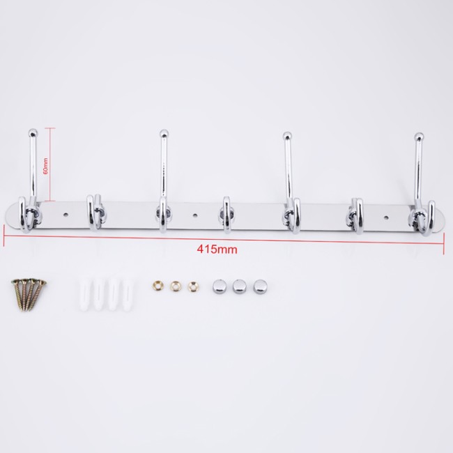 Семь неподвижных крючков расположены на оптимальном расстоянии друг от друга для удобного использования.Крючок подойдет для навешивания предмета любого размера и формы. Выполнен из качественной нержавеющей стали. На поверхность крючка нанесено хромированное покрытие, придающее блеск.