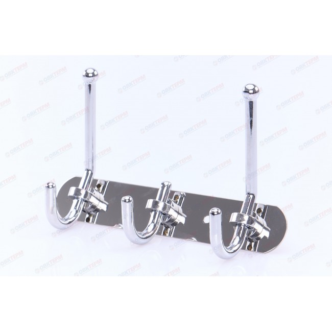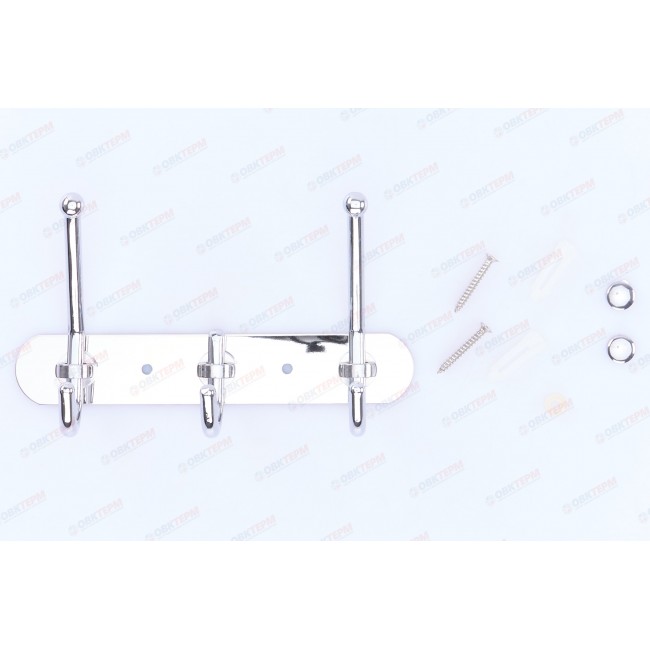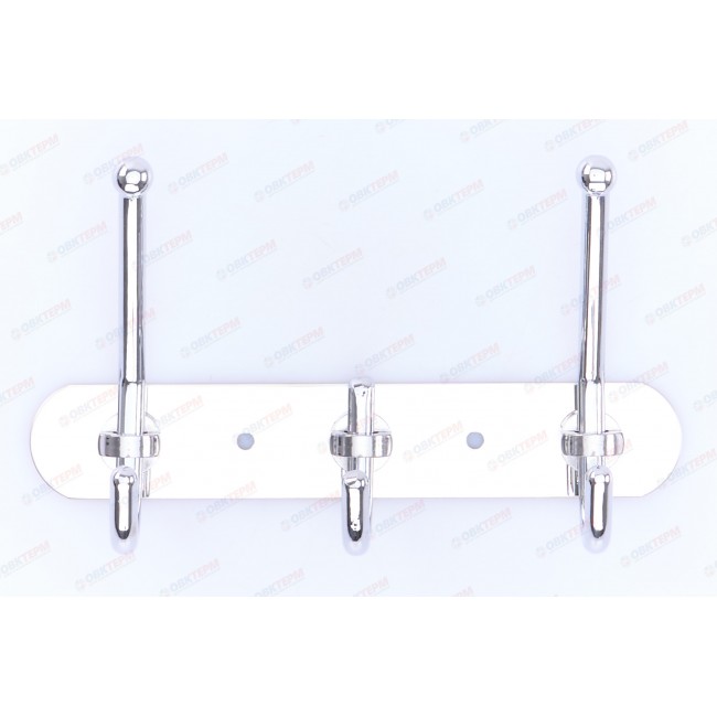 Количество в коробке: 50шт. Вешалка три крючка на планке идеально подойдет для навешивания предмета любого размера и формы. Хромированное покрытие устойчиво к потускнению, легко очищается и придает аксессуарам зеркальный блеск.