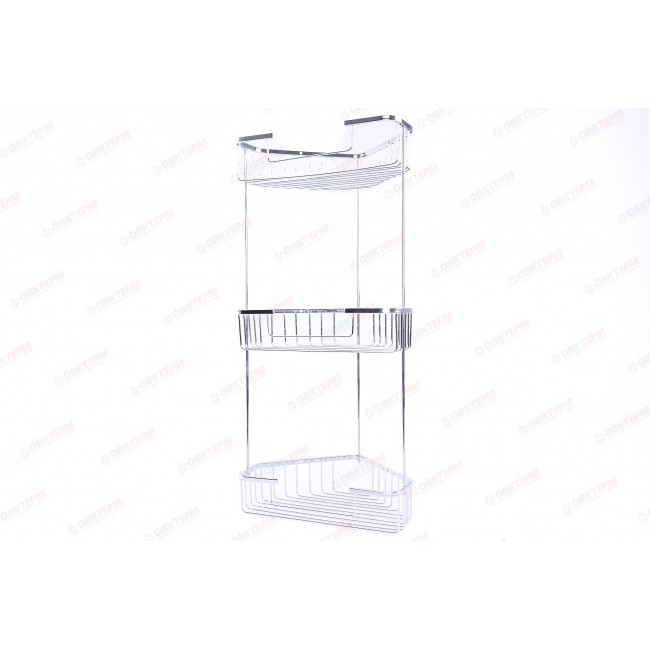Количество в коробке: 10шт. Трёхъярусная угловая полка,выполненная в решеточном дизайне. Наличие двух ярусов позволит разместить большое количество предметов,что поможет избежать использования дополнительных полок. Сделана из нержавеющей.