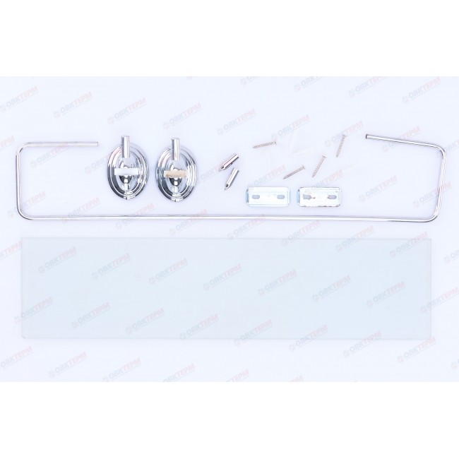 Количество в коробке: 10шт. Одинарная полка с откидным ограничителем, выполнена из стекла размером 52х12 см. Края сглажены. Хромированное покрытие устойчиво к потускнению, легко очищается и придает аксессуарам зеркальный блеск.
