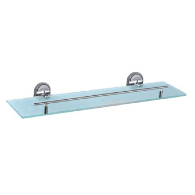 Одинарная полка с ограничителем выполнена из матового стекла, края сглажены. Хромированное покрытие устойчиво к потускнению, легко очищается и придает аксессуарам зеркальный блеск.