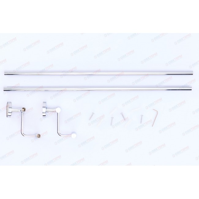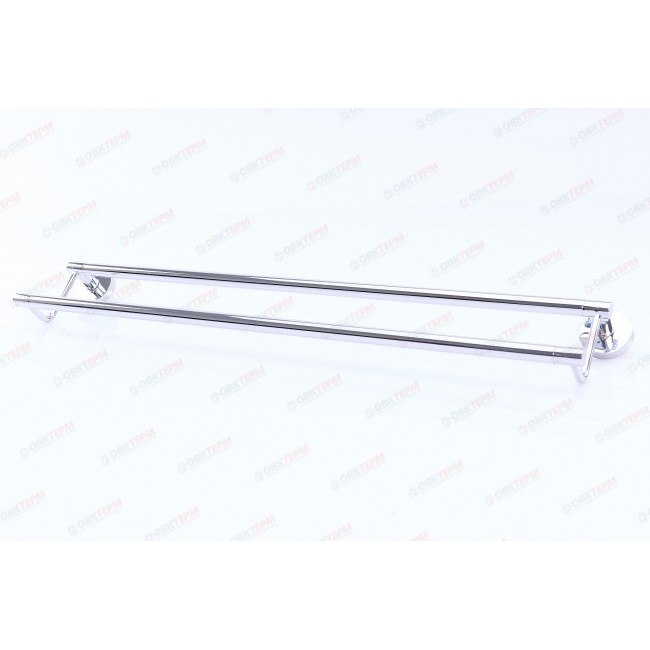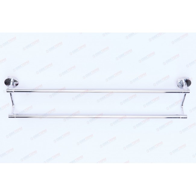 Держатель для полотенец двойной с декоративным креплением. Такой дизайн позволяет не только сэкономить место, но и уменьшить количество отверстий в стене от сверления. Монтаж осуществляется с помощью дюбелей, идущих в комплекте.