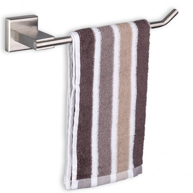 Держатель полотенец с креплением. Стойкое хромированное покрытие защищает изделие от влаги и придает ему блестящий вид. Монтаж к стене осуществляется с помощью дюбелей, идущих в комплекте.