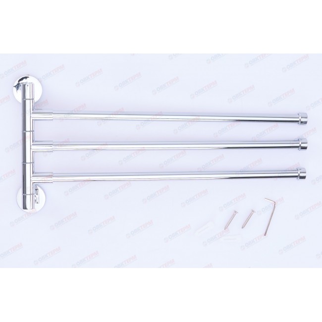 Количество в коробке: 40шт. Держатель полотенец поворотный 3 планки позволяет держать полотенца развешенными, не занимая пространство ванной комнаты. Имеет специальное хромированное покрытие, которое защищает изделие от влаги и придает ему блестящий внешний вид. Монтаж к стене осуществляется с помощью дюбелей, идущих в комплекте.