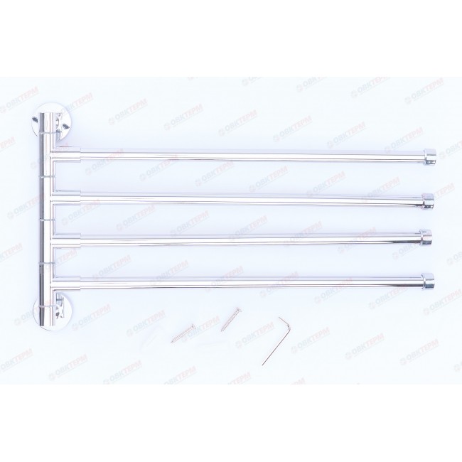 Количество в коробке: 40шт. Держатель полотенец поворотный 4 планки позволяет держать полотенца развешенными, не занимая пространство ванной комнаты. Имеет специальное хромированное покрытие, которое защищает изделие от влаги и придает ему блестящий внешний вид. Монтаж к стене осуществляется с помощью дюбелей, идущих в комплекте.