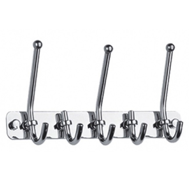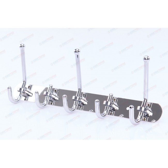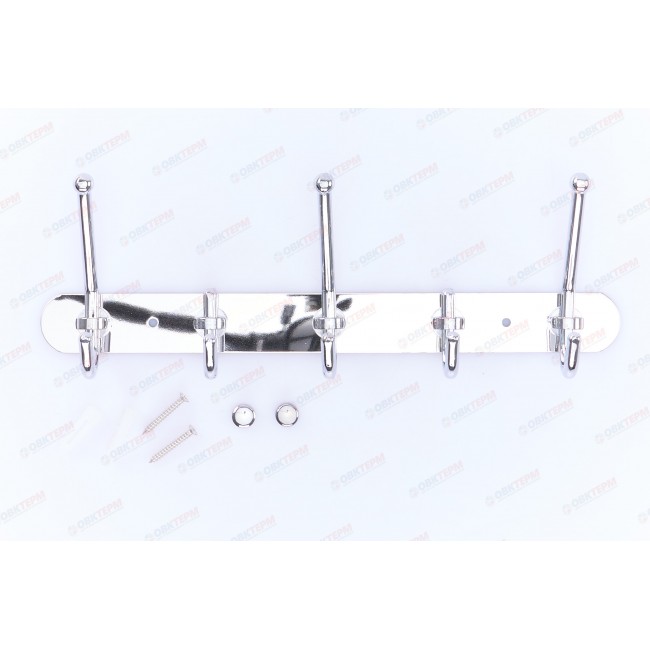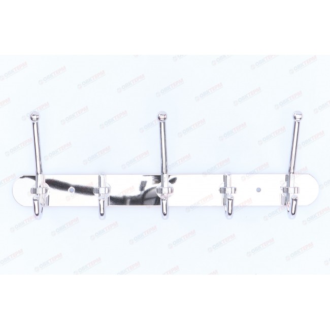 Количество в коробке: 50шт. Вешалка пять крючков на планке идеально подойдет для навешивания предмета любого размера и формы. Хромированное покрытие устойчиво к потускнению, легко очищается и придает аксессуарам зеркальный блеск.