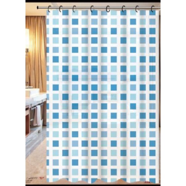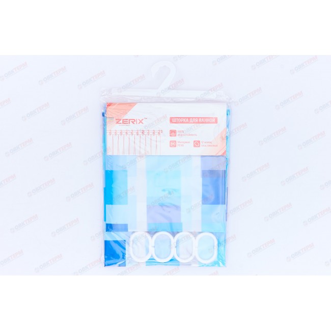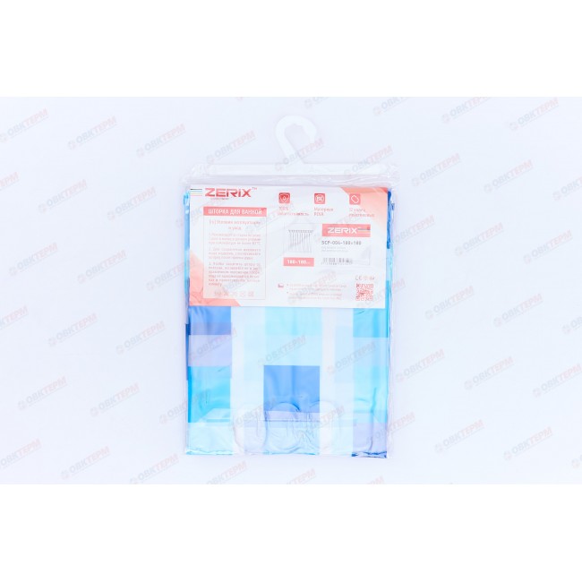 Штора для ванной из полиэтилена (Узор "Сине-голубая плитка") ZERIX SCP-004-180x180