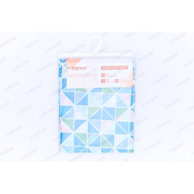 Шторка для ванной SCT-008-180x200 из полиэстера узор зелено-синий Zerix