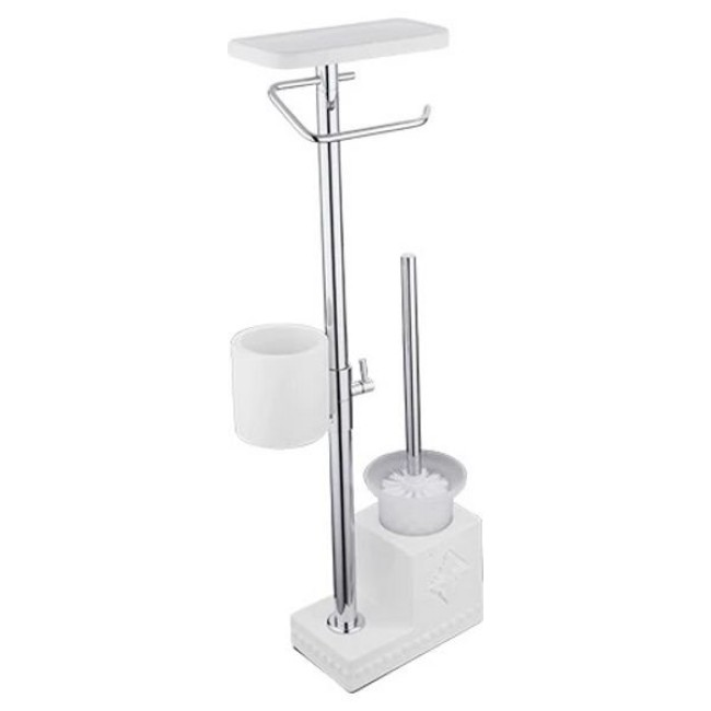 Напольный туалетный ершик Gappo G902-1 с держателем туалетной бумаги, освежителя воздуха, а так же с полочкой произведен из стали и гранита с нержавеющими элементами и покрыт специальным хромированным напылением, которое предотвращает появление ржавчины.