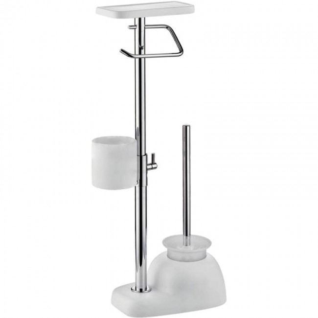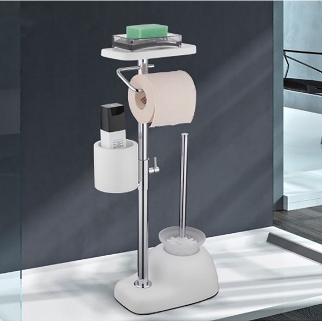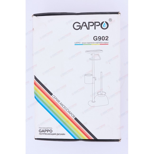 Напольный туалетный ершик Gappo G902 с держателем туалетной бумаги, освежителя воздуха, а так же с полочкой произведен из стали и гранита с нержавеющими элементами и покрыт специальным хромированным напылением, которое предотвращает появление ржавчины.